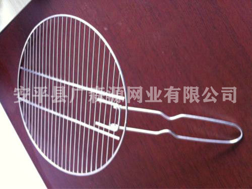 焊邊圓形帶把烤網一般外框絲為:3.0mm  網絲 0.8-1.8mm  網孔 1.0-1.5mm